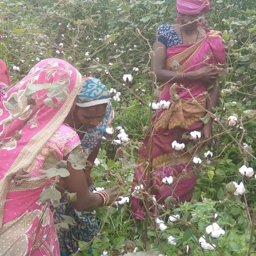 The super-soft fabrics of our Leggings and Apparel originates with organic cotton grown and harvested by a collective group of family farmers in the rainfed regions of Maharashtra, Odisha, and Andhra Pradesh in India. The group of farmers work together, supporting and running a non-profit collective. The collective works to improve socio-economic conditions for the farmers, provides farmer trainings, and runs test plots where they constantly experiment with new growing techniques. The challenges presented by the changing climate are always top of mind for all small-family farmers.